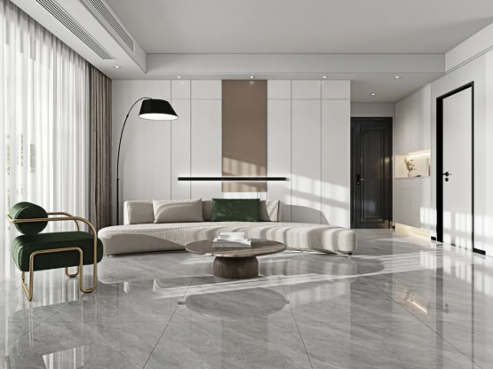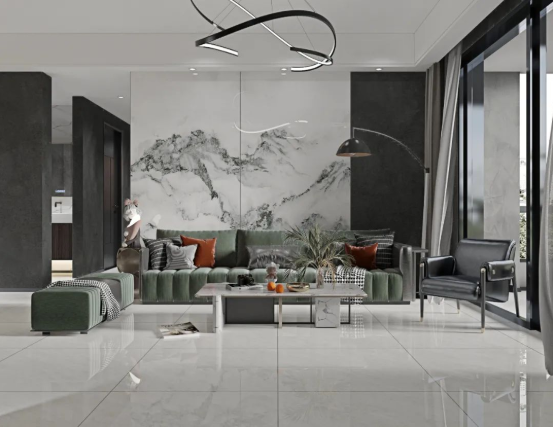 沒有復(fù)雜的紋理穿插,淡淡的白色線條點(diǎn)綴,明暗交替間紋理變化,既豐富了整體空間的肌理層次,亦能烘托出空間的高級(jí)氛圍。