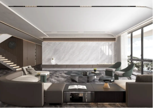 空間結(jié)合簡約時尚的家具搭配,無限連紋的線條柔中帶剛,滲透出真實石材的自然韻律,飄然逸動的紋理綿延,山巒疊嶂,橫看成林側(cè)成峰,以海納百川之胸懷盡顯磅礴氣勢。