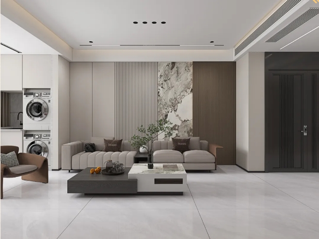 以希臘灰大面積鋪貼空間,其設(shè)計(jì)感恰似天然水墨鋪展,光影交織間,延伸空間質(zhì)感,演繹出優(yōu)雅的生活格調(diào)。